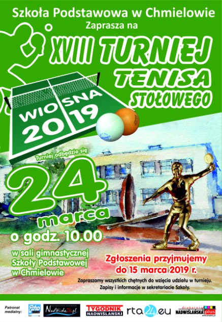 Szkoła Podstawowa w Chmielowie zaprasza na XVIII Turniej Tenisa Stołowego