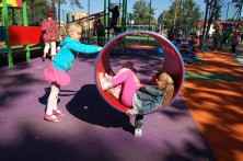 Dzieciaki na placu zabaw w "Parku Miejskim" w Nowej Dębie