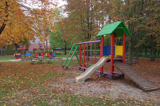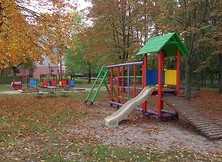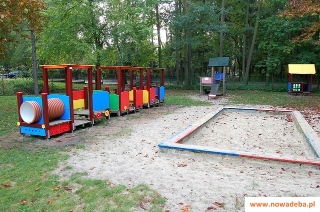 Dzieciaki na placu zabaw w "Parku Miejskim" w Nowej Dębie