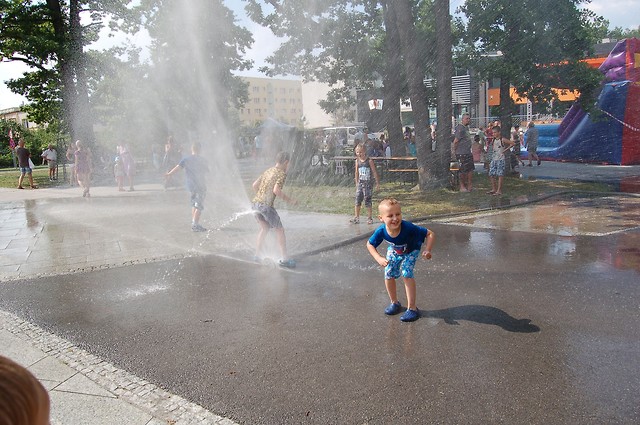 Dzieciaki na placu zabaw w "Parku Miejskim" w Nowej Dębie