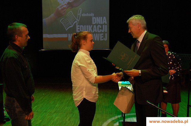 Z okazji święta Dnia Edukacji Narodowej w Samorządowym Ośrodku Kultury w Nowej Dębie miała miejsce uroczystość z udziałem nauczycieli, pracowników oświaty, uczniów i rodziców. Obecni byli także: burmistrz miasta i gminy Nowa Dęba Wiesław Ordon, zastępca burmistrza Leszek Mirowski, dyrektor Biura Obsługi Jednostek Samorządowych Renata Bal, przewodniczący Komisji Oświaty, Kultury, Zdrowia i Sportu RM Stanisław Skimina oraz Maria Krakowska - w-ce-prezes Zarządu Zw. Nauczycielstwa Polskiego