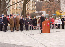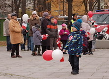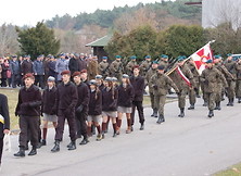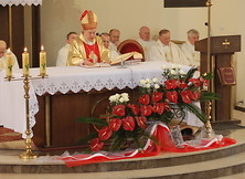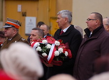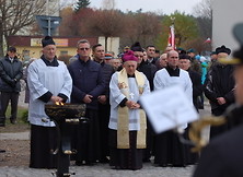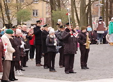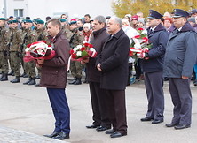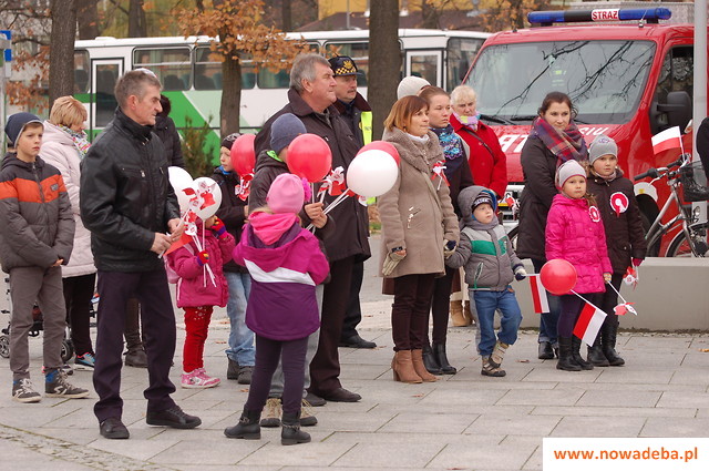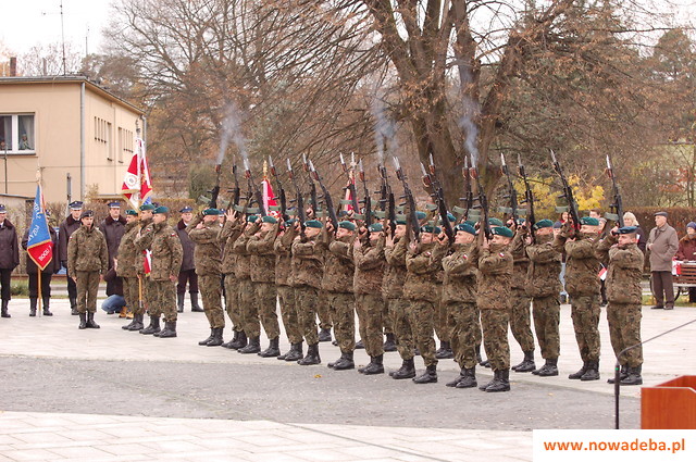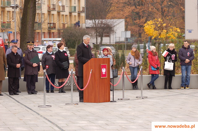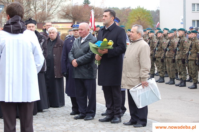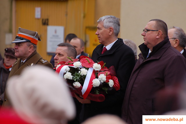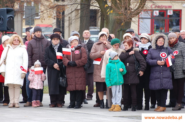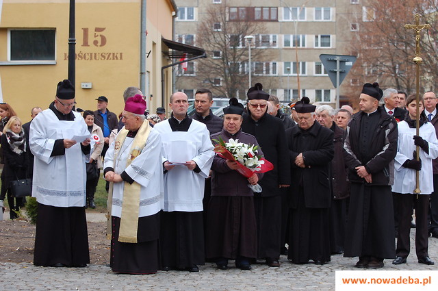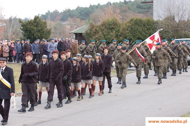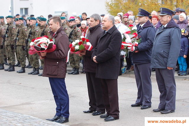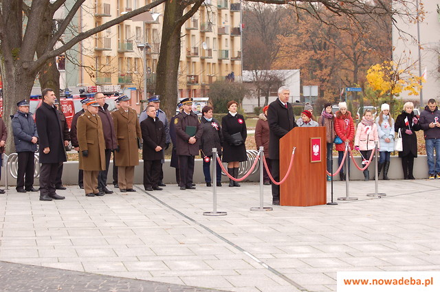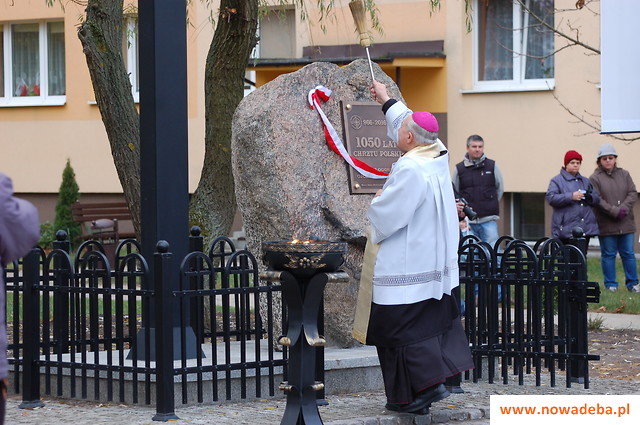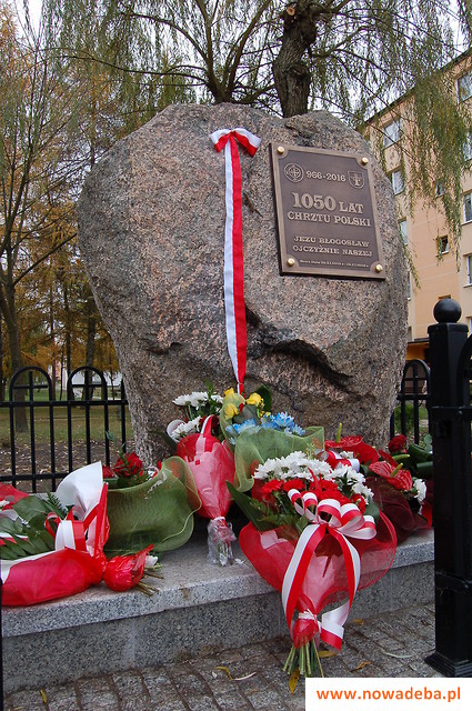 Nowodębskie obchody zaczęły się tradycyjnie od złożenia kwiatów pod pomnikiem Eugeniusza Kwiatkowskiego przy Urzędzie Miasta i Gminy. Następnie w Kościele MBKP odprawiona została uroczysta Msza św. w intencji Ojczyzny pod przewodnictwem J.E. Ks Biskupa Edwarda Frankowskiego, a po niej na osiedlu Północ poświęcony został krzyż i obelisk upamiętniający rocznicę 1050-lecia Chrztu Polski. Dalsze uroczystości miały miejsce na Placu majora Jana Gryczmana.