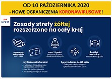 Trwa walka z pandemią COVID-19. Aby była jeszcze bardziej skuteczna, dostosowujemy nasze działania do obecnej sytuacji. Wprowadzone zostają nowe zasady bezpieczeństwa. Od 10 października zasady ze strefy żółtej zostają rozciągnięte na cały kraj.