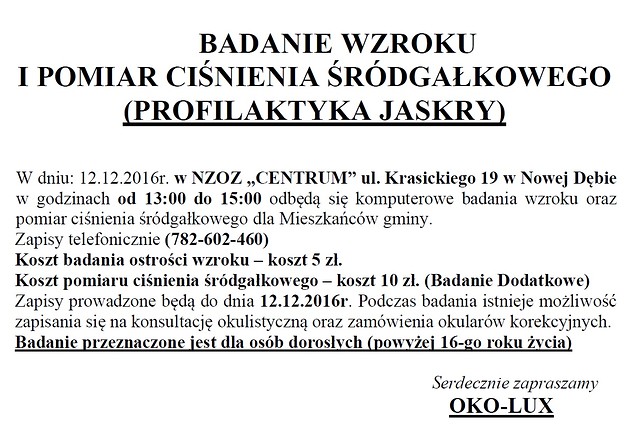 Badanie wzroku i pomiar ciśnienia śródgałkowego - profilaktyka jaskry