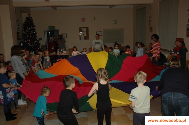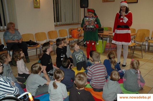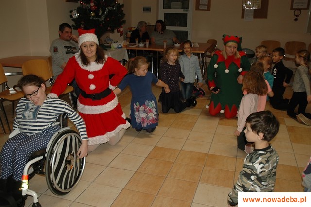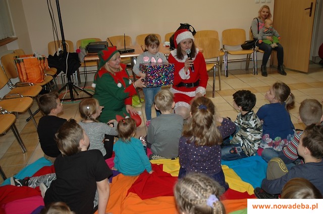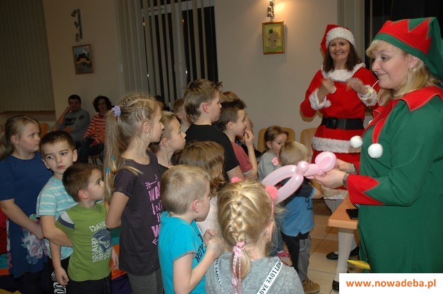 Takim magicznym doznaniom ulegli również pracownicy Miejsko-Gminnego Ośrodka Pomocy Społecznej w Nowej Dębie, którzy po raz kolejny zorganizowali dla najmłodszych członków naszej społeczności Zabawę Mikołajkową. 12 grudnia pod przewodnictwem Pani Mikołajowej i Elfa dzieci przeniosły się do dalekiej krainy Świętego Mikołaja. Zanim to jednak nastąpiło przybyłych gości serdecznie przywitała kierownik Miejsko-Gminnego Ośrodka Pomocy Społecznej – Pani Maria Tomczyk, która skierowała do wszystkich kilka ciepłych słów na koniec życząc wszystkim udanej zabawy. Tańce i pląsy trwały do późnych godzin wieczornych. Oczywiście w trakcie zabawy nie zabrakło najważniejszego punktu programu, a mianowicie prezentów od Świętego Mikołaja, który niestety nie mógł osobiście przybyć, ale miał godnych zastępców. Radość dzieci była ogromna, wszyscy z niecierpliwością wyczekiwali na moment kiedy zostaną wyczytani przez Elfa i otrzymają swój prezent. Pracownicy MGOPS przygotowali również dla wszystkich przybyłych dzieci i ich rodziców drobny poczęstunek (coś do picia i coś słodkiego), z którego mogli korzystać dowoli w przerwie od zabawy.
