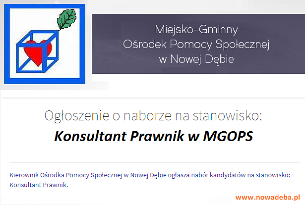 Kierownik Ośrodka Pomocy Społecznej w Nowej Dębie ogłosił nabór kandydatów na stanowisko: Konsultant Prawnik.