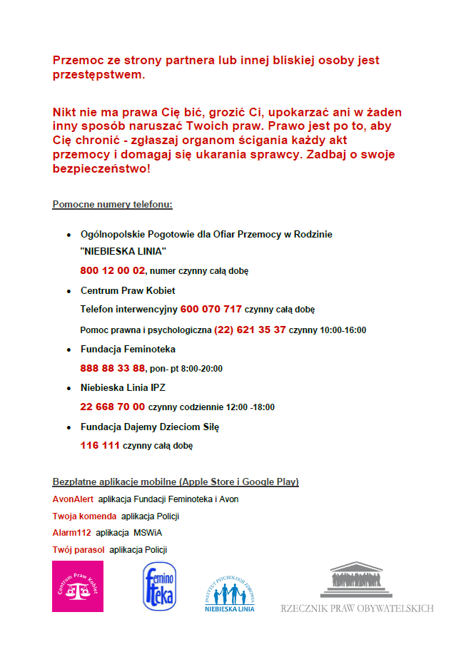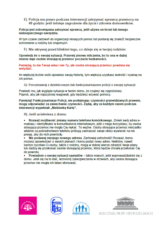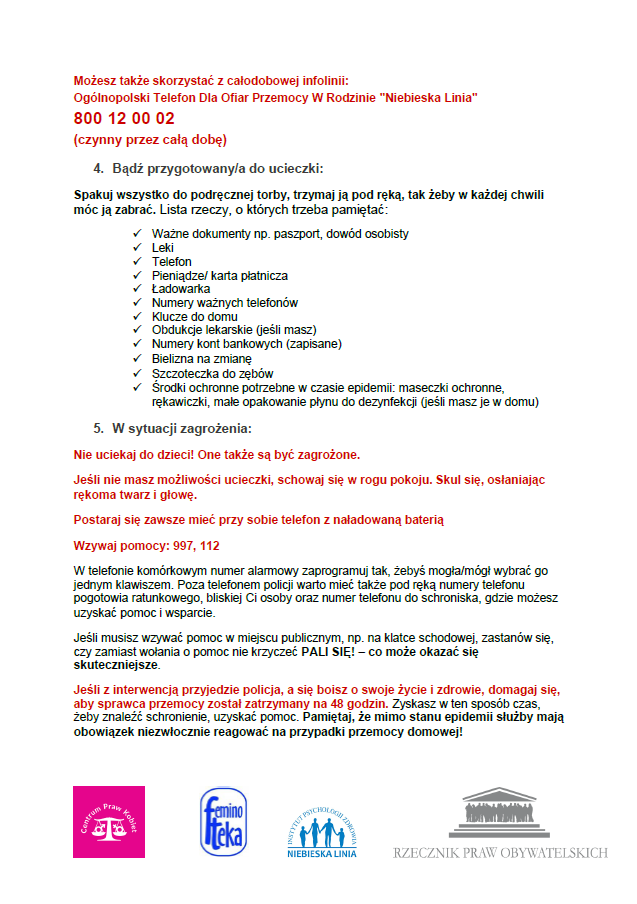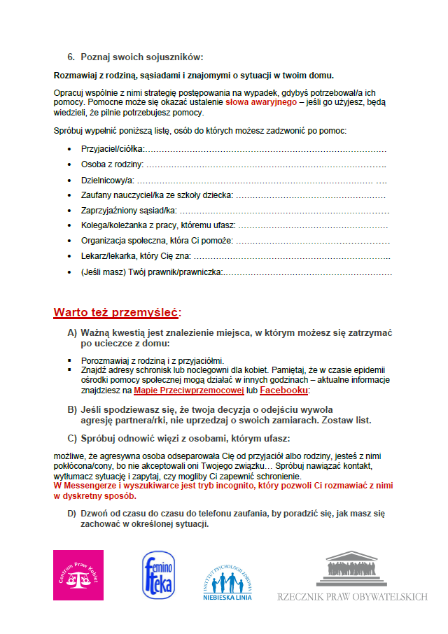Osobisty plan awaryjny. Procedury dla osób doświadczających przemocy w rodzinie