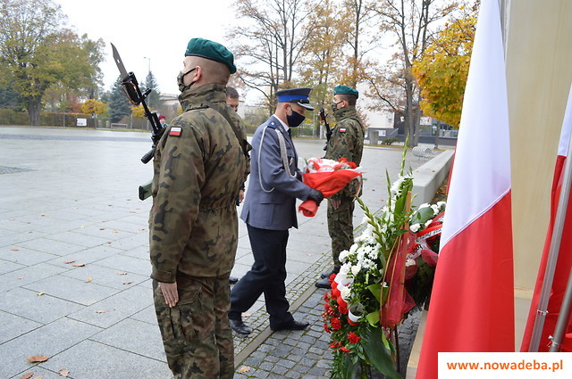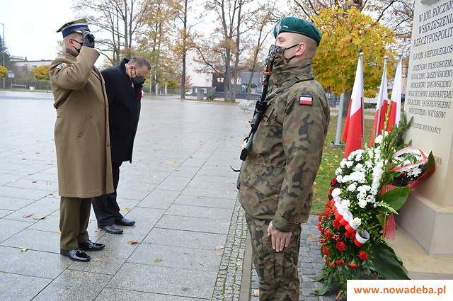 11 listopada, w samo południe, biało-czerwone wiązanki kwiatów pod Pomnikiem Niepodległości złożyli: zastępca burmistrza miasta i gminy Nowa Dęba Leszek Mirowski, reprezentujący Ośrodek Szkolenia Poligonowego Wojsk Lądowych mjr Mariusz Kseń, komendant Komisariatu Policji w Nowej Dębie Jerzy Lis oraz radny Rady Miejskiej Tomasz Kopeć. Nie obyło się bez patriotycznego występu: pieśń niepodległościową spontanicznie odśpiewała młodziutka nowodebianka. Żołnierze z OSPWL im. Jana Szypowskiego w Nowej Dębie pełnili wartę honorową przy obelisku, a we wszystkich kościołach na terenie miasta i gminy odprawione zostały msze za Ojczyznę.