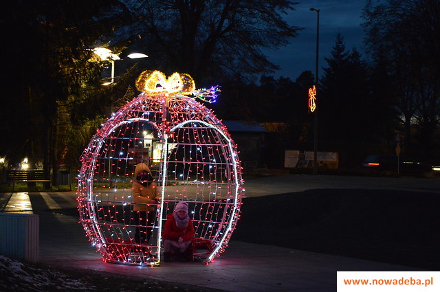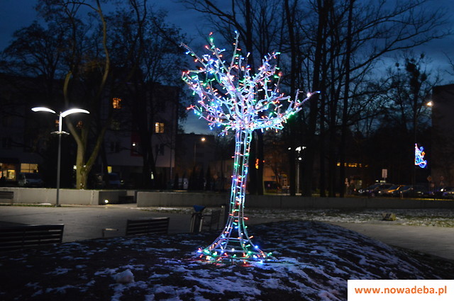 - Zamontowaliśmy ozdoby słupowe, 13 wynajętych sztuk, na ul. Jana Pawła II, podobnie na słupach wzdłuż ul. Krasickiego. Na placu mjra Jana Gryczmana zostały zamontowane dwie sztuki: drzewko ledowe i bańka z przejściem, nie ma ubiegłorocznej ozdoby: prezentu z przejściem – informuje Alicja Rydzik z nowodębskiego magistratu.