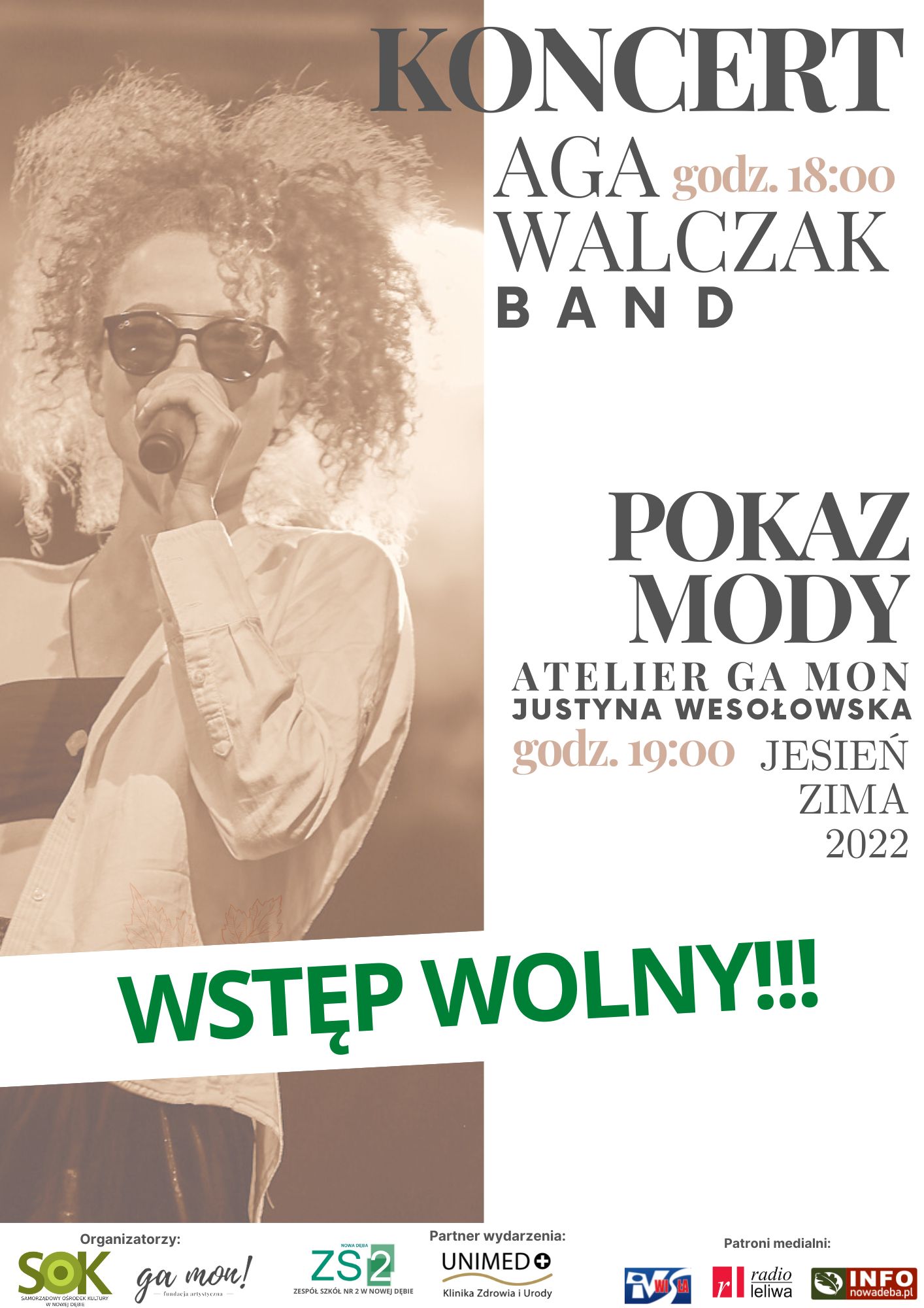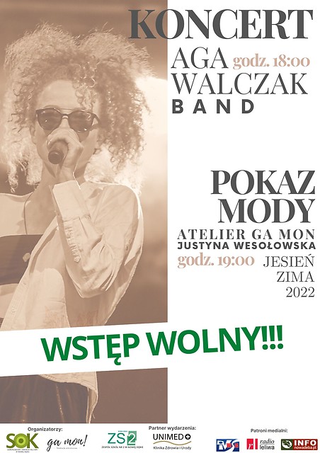 Dzisiejsze wydarzenie koncert Agi Walczak oraz Pokaz Mody są zupełnie darmowe dzięki pozyskaniu sponsora...!!!