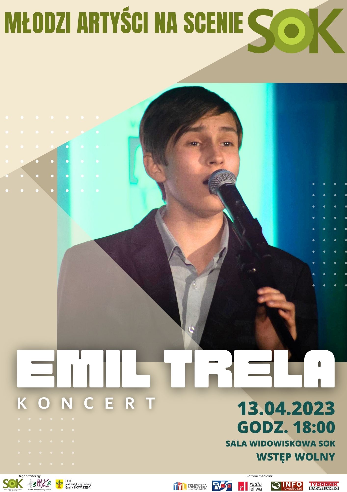 Pierwszy koncert z cyklu MŁODZI ARTYŚCI NA SCENIE SOK. Już 13 kwietnia o godz. 18:00 w sali widowiskowej SOK wystąpi Emil Trela - serdecznie zapraszamy!