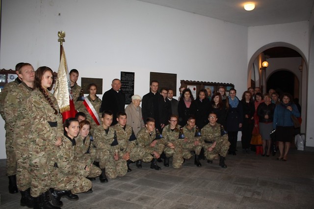 Uroczystość upamiętniająca 74 rocznicę powstania Służby Zwycięstwu Polski została przygotowana przez młodzież Zespołu Szkół Nr 1 w Nowej Dębie pod kierunkiem p. Elżbiety Cichoń i p. Ewy Okinczyc. Uczniowie przedstawili montaż słowno-muzyczny upamiętniający tamte wydarzenia w wierszach i pieśniach. Mszę świętą za Ojczyznę, za poległych i żyjących uczestników walk o niepodległą Polskę celebrowali ks. dr Mieczysław Wolanin oraz ks. Andrzej Łach. Uroczystość uświetniła swoją obecnością p. Weronika Jachyra, jedna z nielicznych żyjących żołnierzy Armii Krajowej z terenu naszej gminy. Podczas uroczystości obecni byli także przedstawiciele władz gminnych w osobie p. Burmistrza Wiesława Ordona, dyrekcja, nauczyciele i uczniowie Zespołu Szkół Nr 1, a w wśród nich klasy o profilu wojskowym oraz społeczność lokalna Nowej Dęby. Na zakończenie młodzież złożyła kwiaty pod pamiątkową tablicą przy kościele poświęconą ofiarom tamtych wydarzeń.