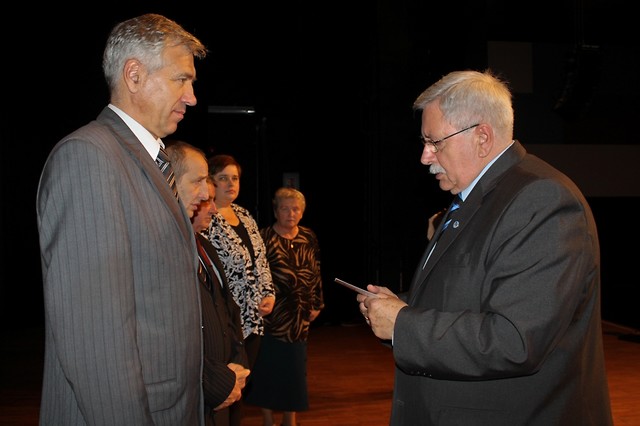 Prezes Nowodębskiego Koła Diabetyków - Kazimierz Szczur, z okazji jubileuszu odebrał pamiątkowy grawerton, który wręczyli mu burmistrz Nowej Dęby - Wiesław Ordon i przewodniczący Rady Miejskiej – Wojciech Serafin.