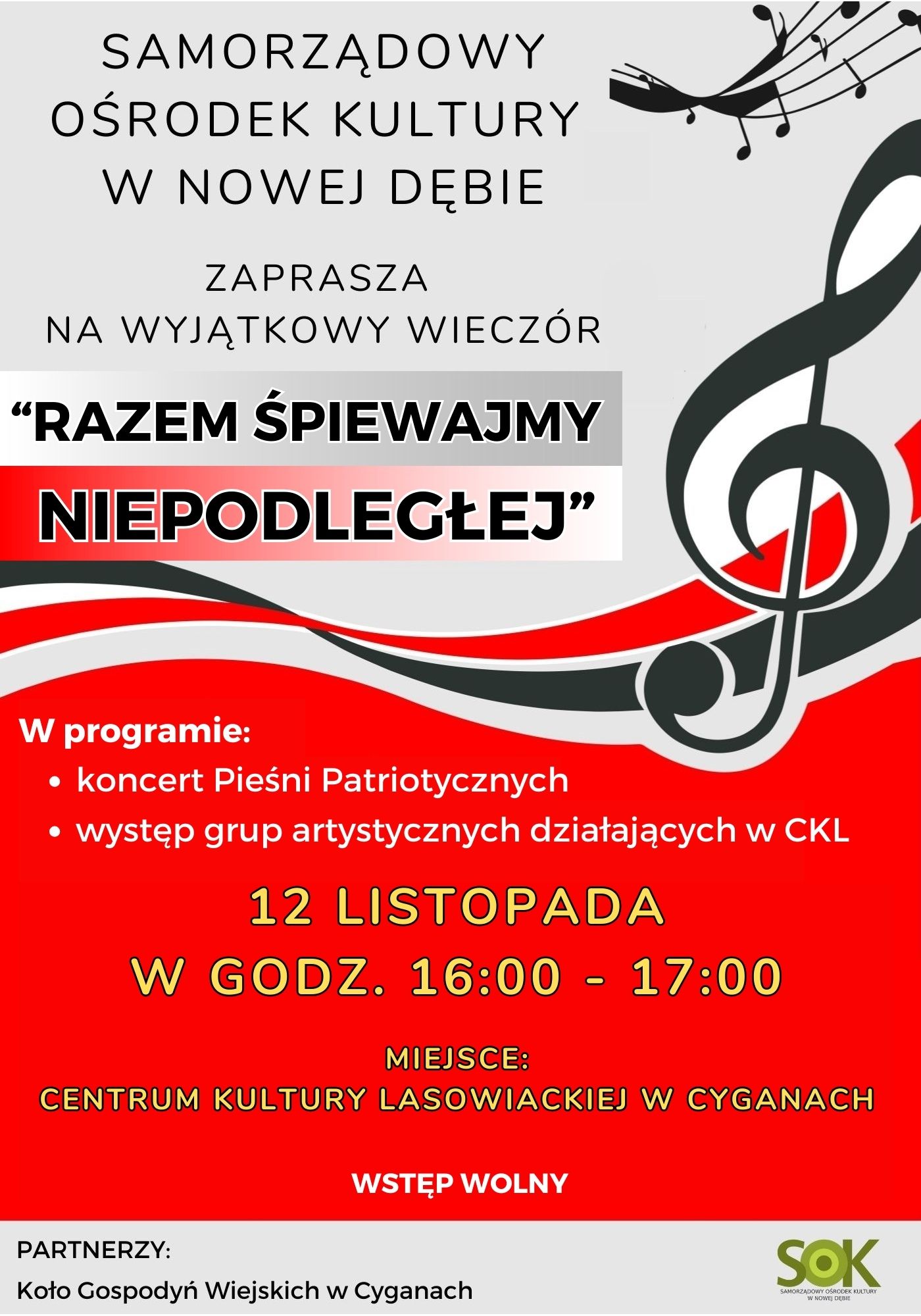 "Razem śpiewajmy Niepodległej" - koncert w CKL Cygany