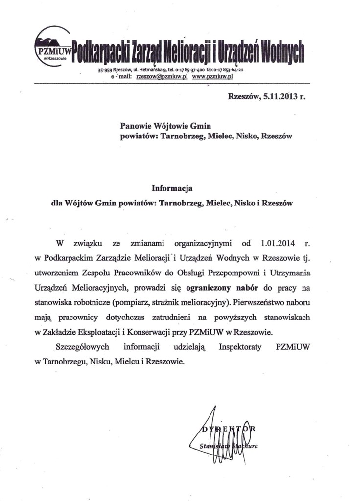 Podkarpacki Zarząd Melioracji i Urządzeń Wodnych ogłasza nabór do pracy