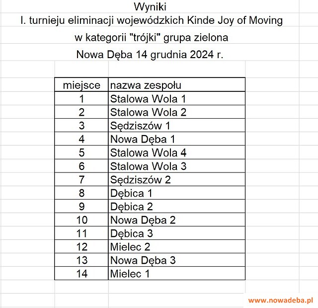 14 grudnia 2024 r. w obiektach sportowych Szkoły Podstawowej Nr 2 im. Henryka Sienkiewicza w Nowej Dębie odbyły się pierwsze w tym sezonie rozgrywki rozpoczynające cykl eliminacji Mistrzostw Polski Kinder Joy of Moving w mini siatkówce. Podkarpacie podzielone zostało na 4 grupy regionalne w których rozgrywane są turnieje w kategoriach: U12 – „Czwórki” , U11 – „Trójki” , U10 – „Dwójki” oraz U9 – „Jedynki”. W ostatni weekend Nowa Dęba gościła drużyny w dwóch najstarszych kategoriach U12 i U11. Całodzienne sportowe zmagania to dwa turnieje zorganizowane dla 16 drużyn w kategorii U12 oraz 14. drużyn w kategorii U11. Łącznie startowało ponad 100 najmłodszych adeptek siatkówki z Sędziszowa, Stalowej Woli, Mielca, Zaleszan, Dębicy i Nowej Dęby.