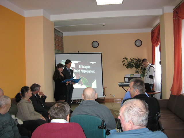 14 listopada 2013 r. w Domu Pomocy Społecznej w Nowej Dębie odbyły się Uroczyste Obchody Narodowego Święta Niepodległości. Z programem artystycznym odwiedzili nas uczniowie Gimnazjum nr 1 w Nowej Dębie, wraz z nauczycielami Panią Haliną Strojek oraz Panią Anną Gurdak. Następnie w progi naszego Domu zawitali uczniowie Szkoły Podstawowej nr 2 w Nowej Dębie wraz z opiekunem Panią Anetą Wojdacz. Uczniowie Gimnazjum oraz Szkoły Podstawowej zaprezentowali mieszkańcom DPS programy słowno - muzyczne upamiętniające rocznicę odzyskania niepodległości przez Naród Polski . Wzruszeniom nie było końca. Podopieczni DPS z łezką w oku przypominali sobie dawne czasy.