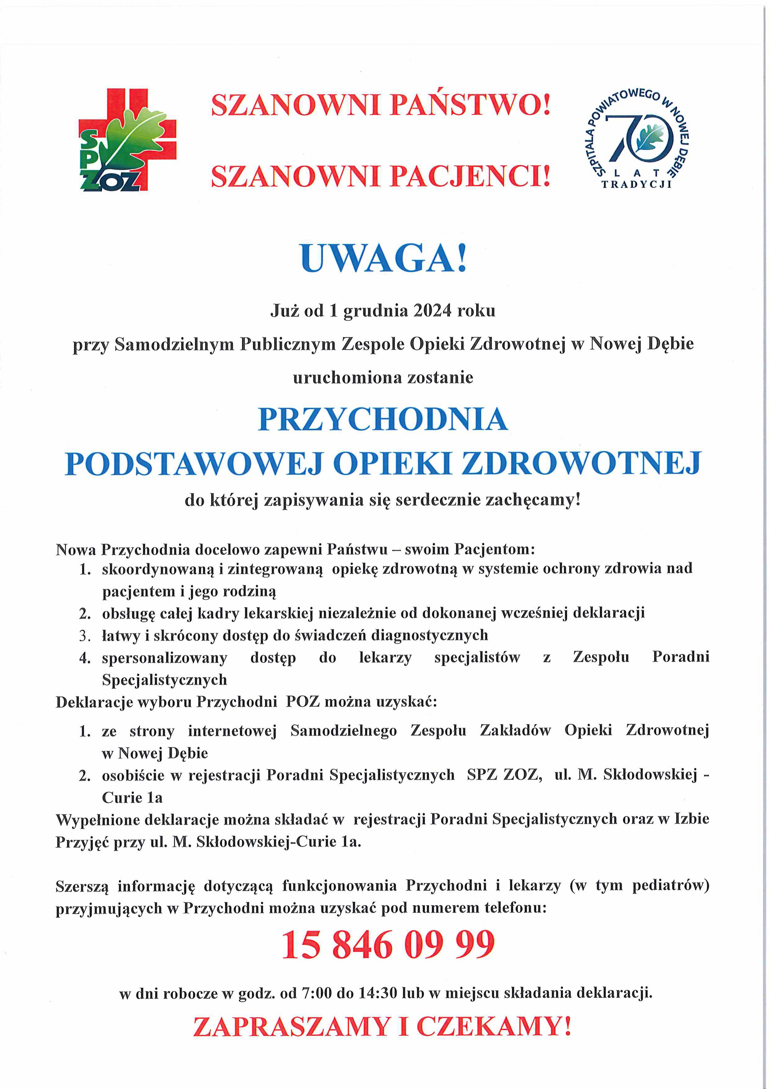Informacja o nowym POZ przy SPZZOZ w Nowej Dębie