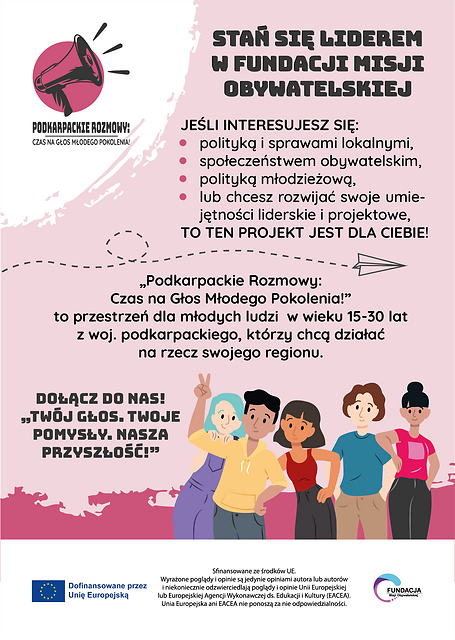 W imieniu Fundacji Misji Obywatelskiej zapraszamy do udziału w programie ,,Podkarpackie Rozmowy: Czas na Głos Młodego Pokolenia!’’. Projekt jest inicjatywą skierowaną do młodzieży w wieku 15-30 lat z województwa podkarpackiego mającą na celu wyposażenie młodych ludzi w narzędzia i wiedzę, które pozwolą im skutecznie wpływać na otaczającą ich rzeczywistość, a także budowanie przestrzeni dla ich głosu w ważnych dla regionu dyskusjach. Projekt ma na celu nie tylko wzrost świadomości młodych ludzi na temat mechanizmów demokracji i partycypacji obywatelskiej, ale również rozwijanie umiejętności komunikacyjnych, krytycznego myślenia oraz pracy zespołowej. Uczestnicy zostaną zaproszeni na cztery trzydniowe zjazdy formacyjne mające na celu przygotowanie młodzieży do partycypacji w życiu publicznym i obywatelskim. Każdy zjazd łączy teorię z praktyką poprzez spotkania z ekspertami, decydentami, przedstawicielami NGO i przedsiębiorcami inspirującymi do działania na rzecz regionu. W trakcie trwania projektu zostaną przeprowadzone wywiady z uczestnikami na temat zaangażowania młodych ludzi w życie publiczne i procesy demokratyczne. Kolejnym etapem będzie organizacja dziesięciu debat na tematy ważne z punktu widzenia młodzieży. Debaty zostaną zorganizowane w różnych miejscowościach Podkarpacia. Projekt ma charakter włączający, to znaczy, że jesteśmy otwarci na osoby wykluczone geograficznie, ekonomicznie, czy też osoby z niepełnosprawnościami. Udział w projekcie, co do zasady jest nieodpłatny. Na podstawie zebranych ankiet zostaną sformułowane postulaty, które będą miały szansę na realny wpływ na lokalną politykę i społeczność. Zostaną one zaprezentowane w czterech największych miastach województwa tj. Rzeszowie, Krośnie, Tarnobrzegu i Przemyślu. Uczestnictwo Pana Burmistrza w organizowanych zjazdach formacyjnych i debatach byłaby dla nas ogromnym zaszczytem oraz wsparciem, które przyczyni się do zwiększenia prestiżu wydarzenia i zainteresowania nim szerokiej grupy młodzieży oraz instytucji działających na rzecz młodych ludzi.