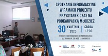 Starostwo Powiatowe w Tarnobrzegu (ul. 1 Maja 4, 39-400 Tarnobrzeg), 30.04.2025 – Fundacja Misji Obywatelskiej organizuje spotkanie informacyjno-szkoleniowe dla młodzieży z Powiatu Tarnobrzeskiego w ramach projektu „Przystanek – Czas na Podkarpacką Młodzież! Edycja 2024–2026”. Projekt jest finansowany ze środków Narodowego Instytutu Wolności – Centrum Rozwoju Społeczeństwa Obywatelskiego w ramach Rządowego Programu Fundusz Młodzieżowy na lata 2022-2033.