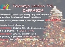 Telewizja Lokalna TVL serdecznie zaprasza mieszkańców Nowej Dęby do składania świątecznych życzeń najbliższym, które zostaną wyemitowane w specjalnym bloku Wydarzeń - 24 grudnia! Nagrania odbędą się w Samorządowym Ośrodku Kultury w Nowej Dębie już w najbliższą sobotę, (14 grudnia 2013 r.) w godzinach 16:00-18:00.