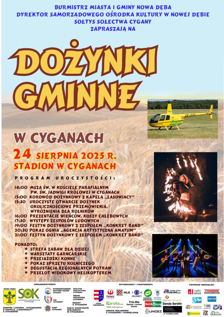 Już 24 sierpnia 2025 r. zapraszamy na Dożynki Gminne… w tym roku gospodarzem dożynek będzie Sołectwo Cygany, które przygotowało na ten dzień wiele atrakcji… cały program i szczegóły wydarzenia na plakacie. W imieniu organizatorów serdecznie zapraszamy.