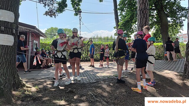 A potem – prosto nad Bałtyk! Już pierwszego dnia powitaliśmy morze, zanurzając stopy w chłodnej wodzie i łapiąc pierwsze promienie wakacyjnego słońca. Od tej chwili atmosfera tylko się zagęszczała. Każdy dzień przynosił nowe wyzwania i mnóstwo zabawy. Zacięte mecze piłki nożnej na orliku, konkurs plastyczny „Moje wakacje”, pełne adrenaliny wyczyny w parku linowym oraz artystyczne popisy – rapy, piosenki i tańce, które opowiadały historię naszej kolonii.