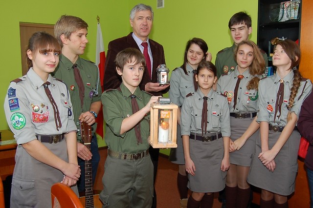 Zuchy, harcerze i instruktorzy ZHP ze Środowiskowego Szczepu Drużyn Harcerskich "Jedynka" ruszyli na ulice Nowej Dęby, żeby przekazać płomień z Betlejem instytucjom i organizacjom. Zawitali także do Urzędu Miasta i Gminy Nowa Dęba, gdzie przekazali światło pokoju i złożyli świąteczne życzenia na ręce burmistrza Wiesława Ordona.