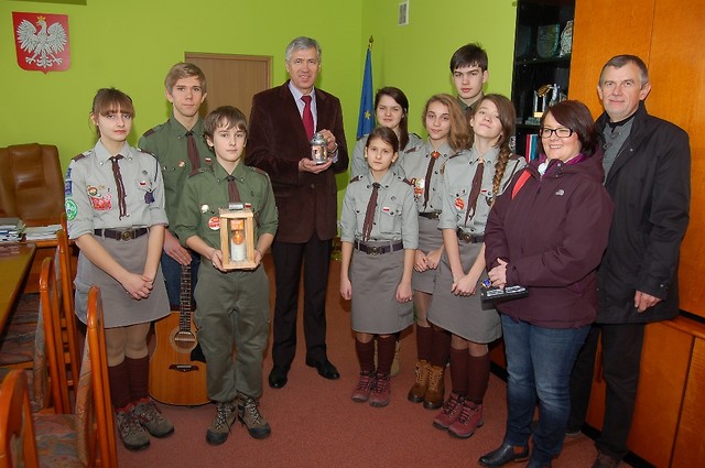 Burmistrz podziękował za życzenia i kolędę, a harcerzom życzył w Nowym Roku wytrwałości w działaniach na rzecz społeczności lokalnej oraz w doskonaleniu siebie.