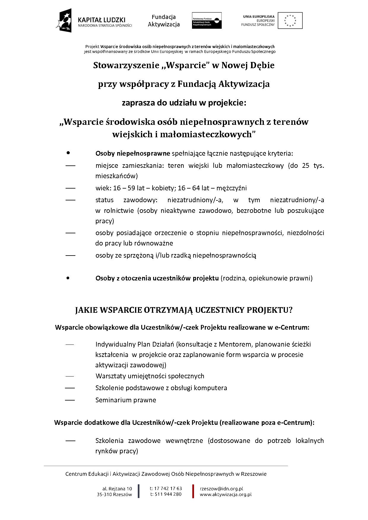 Zaproszenie do udziału w projekcie: ,,Wsparcie środowiska osób niepełnosprawnych z terenów wiejskich i małomiasteczkowych”