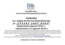 Końcem stycznia ruszyła I edycja konkursu fotograficznego pt.: ,,Cztery pory roku”, którego celem jest upowszechnianie i popularyzacja fotografii, przedstawienie piękna przyrody naszego regionu, wybranego dowolnie miejsca w swojej okolicy przez cztery sezony, poczynając od zimy poprzez wiosnę, lato i jesień.