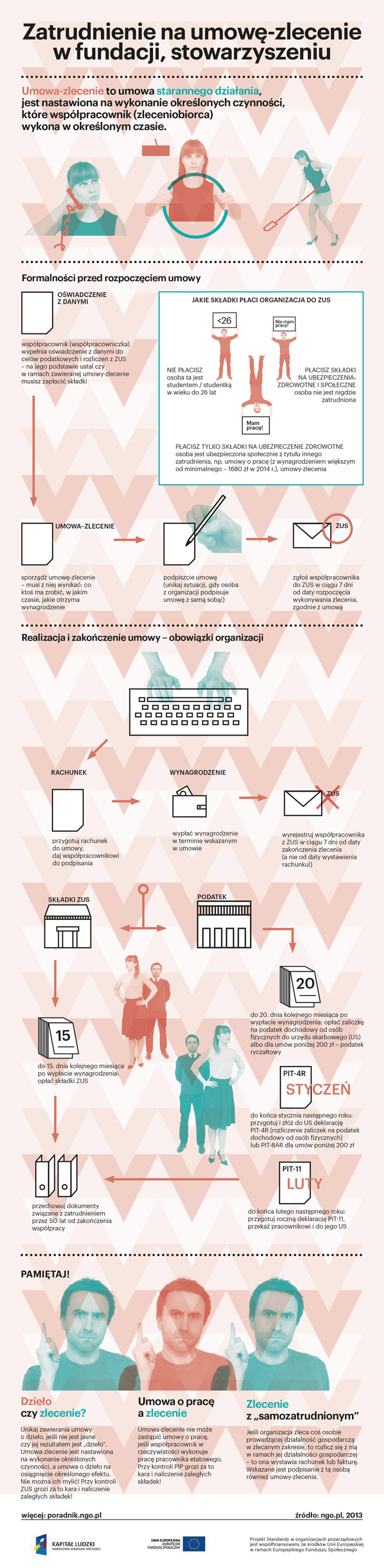 W waszej organizacji zlecacie wykonywanie różnych prac na umowy-zlecenia? Obejrzyj tę infografikę – sprawdź, jakie kroki są konieczne do tego, żeby w prawidłowy sposób zawrzeć taką umowę ze współpracownikiem, współpracowniczką.