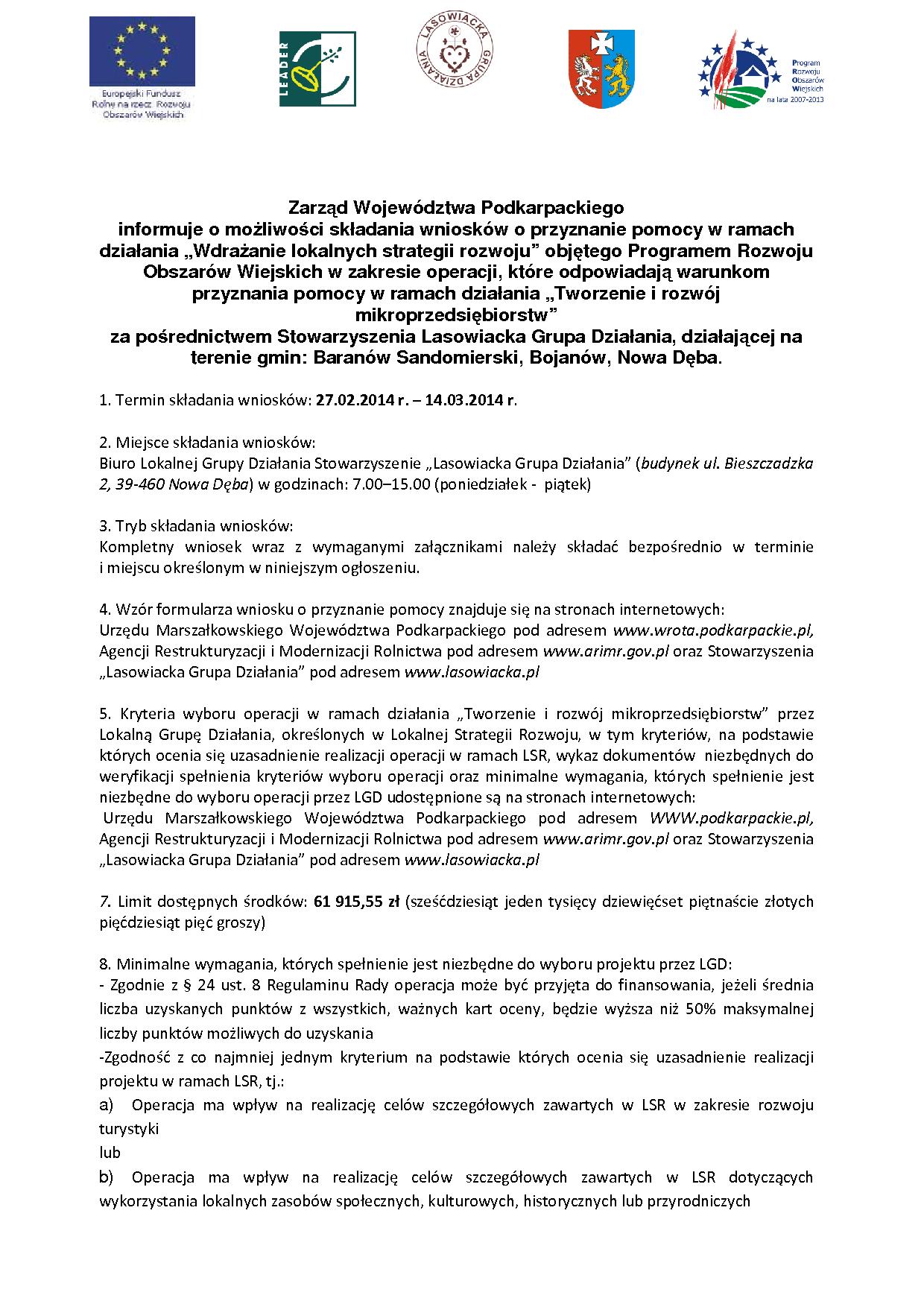 Zarząd Województwa Podkarpackiego informuje o możliwości składania wniosków