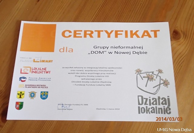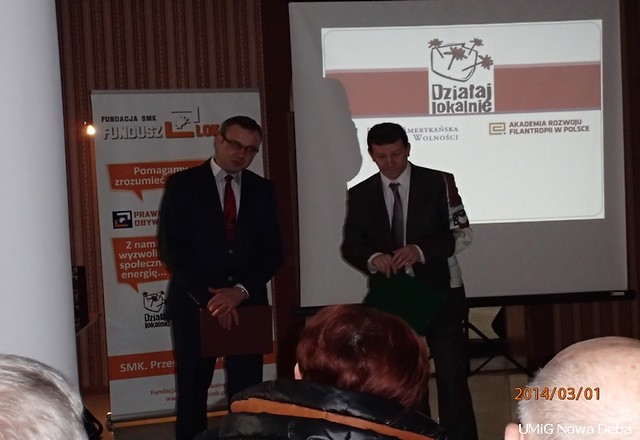 01.03.2014 r. odbyła się uroczysta Gala Lokalne Inicjatywy 2014 organizowana przez Fundację Fundusz Lokalny SMK oraz Burmistrza Miasta I gminy Zaleszany. Spotkanie odbyło się w stylowych pomieszczeniach Dworu Horodyńskich w Zbydniowie. Podczas Gali zaprezentowano Laureatów Programu Działaj Lokalnie VII, wyłoniono Super Wolontariuszy oraz wyróżniono trzy projekty w ramach konkursu „Lokalne Inicjatywy – Przestrzeń Działania”. Wyróżnienie zdobyła Grupa Nieformalna DOM działająca przy Domu Pomocy Społecznej w Nowej Dębie wraz z Komitetem Miast Bliźniaczych Nowa Dęba- Ploemeur - Fermoy za projekt pn. „ Apetyt na aktywne życie”. Prezes FFL SMK – pan Stanisław Baska podziękował gminom za wsparcie projektów. Podziękowanie dla naszej gminy odebrał pan Zygmunt Żołądź- zastępca burmistrza . Galę uświetniły występy młodzieży ze Szkoły Muzycznej w Stalowej Woli oraz znakomity poczęstunek przygotowany przez członków Ludowego Uniwersytetu Zaleszańskiego.