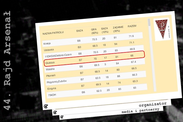 Po raz pierwszy w rajdzie uczestniczyła reprezentacja Środowiskowego Szczepu Drużyn Harcerskich "Jedynka” z Nowej Dęby, jako patrol o nazwie 'Glukoza' w składzie: Wiktoria Serafin, Magda Misiak, Ola Wdowik, Krzysiek Markowicz, Maciej Misiak, Mateusz Wyżyn, Mikołaj Pasek, Dawid Zieliński, Marcin Więckiewicz i Mariusz Bezdzietny.