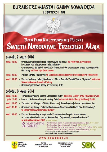 Burmistrz Miasta i Gminy Nowa Dęba zaprasza na obchody Dnia Flagi Rzeczypospolitej Polskiej oraz Święto Narodowe Trzeciego Maja.