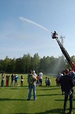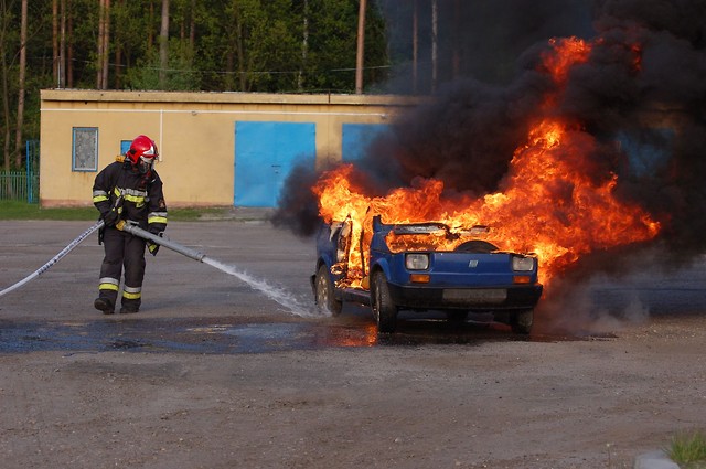 Najbardziej widowiskową częścią pokazów było uwolnienie poszkodowanego w symulowanym wypadku samochodowym oraz gaszenie płonącego wraku.