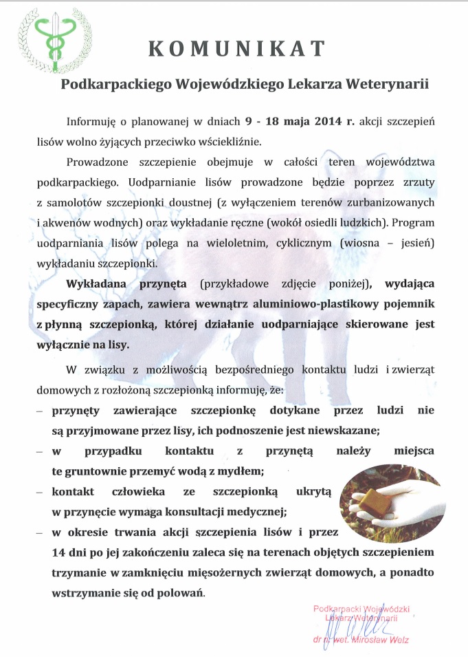 Komunikat Podkarpackiego Wojewódzkiego Lekarza Weterynarii