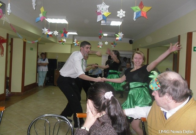 24 stycznia 2013 roku w zaprzyjaźnionym Domu Pomocy Społecznej w Brzózie Królewskiej, odbyła się zabawa karnawałowa, na którą udali się podopieczni Domu Pomocy Społecznej w Nowej Dębie. Dzięki uprzejmości Dyrekcji i całego personelu, mieliśmy możliwość obejrzenia okazałego budynku, w którym znajduje się Dom, a także uczestniczenia we wspólnych tańcach i biesiadowaniu. Zabawa trwała do późnych godzin wieczornych. Wszyscy uczestnicy wrócili do Domu w wyśmienitych humorach. Na pamiątkę zostały nam wspaniałe wspomnienia oraz przepiękne maski karnawałowe, które dostaliśmy od mieszkańców Domu Pomocy Społecznej w Brzózie Królewskiej. Serdecznie dziękujemy Panu Dyrektorowi za pamięć i za zaproszenie, a także za ciepłe przyjęcie delegacji naszych mieszkańców.