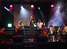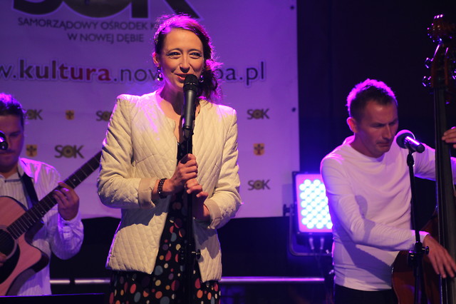 Na podsumowanie zakończenia wakacji wystąpiła Marta Bizoń, która zaprezentowała utwory ze swojej najnowszej płyty pt. „TU i TU”. Jest to opowieść o życiu w dwóch światach. Świat realny przenika się w nich ze światem teatru. Pełna temperamentu artystka z poczuciem humoru stara się odnaleźć w nich i pomiędzy nimi. Autorem muzyki jest Aleksander Brzeziński, słów - Michał Chludziński. Warto dodać, że płyta „TU i TU” jest piątym krążkiem w dorobku Marty Bizoń. Teksty szybko wpadały w ucho odbiorców, co było widać podczas wspólnego śpiewu w rytm muzyki. Słowa podziękowania dla artystki wyraził burmistrz Wiesław Ordon. Pani Marcie życzymy sukcesów i mamy nadzieję na kolejny występ na nowodębskiej scenie.