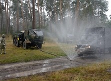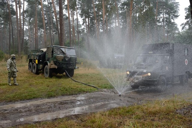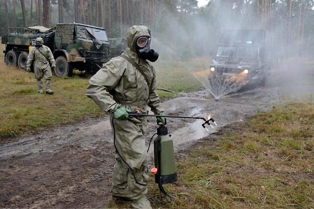 Żołnierze z plutonu likwidacji skażeń z 5 pułku chemicznego otrzymują zadanie likwidacji skażenia terenu, w którym przebywały osoby mające kontakt z cudzoziemcami chorymi na wąglika. Chemicy za pomocą instalacji rozlewczych na pojazdach przystępują do dekontaminacji, czyli usuwania i dezaktywacji szkodliwych czynników biologicznych ze pojazdów, sprzętu i kontenerów mieszkalnych w Ośrodku dla Uchodźców.