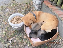 Dzisiaj po godzinie 7 rano Straż Miejska w Nowej Dębie otrzymała zgłoszenie od właścicieli restauracji "Dębianka" w Nowej Dębie, o pozostawionej w pobliżu restauracji na mrozie psiej rodzinie - suczce z czterema szczeniętami. W ciasnym kartonie pod płotem ktoś nieodpowiedzialny zostawił na pastwę losu niewinne psy. Na pierwszy rzut oka dało się zauważyć, że psy są zadbane i właścicielowi nie były obojętne... aż do dzisiejszego poranka. Ponadto bezduszny właściciel, jak na ironię, zostawił wiaderko z karmą.