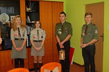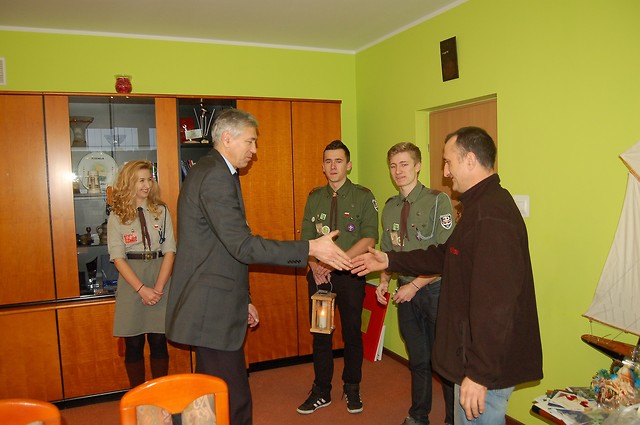 Burmistrz miasta i gminy Nowa Dęba Wiesław Ordon przyjął 19 grudnia z rąk nowodębskich harcerzy Betlejemskie Światło Pokoju.