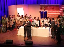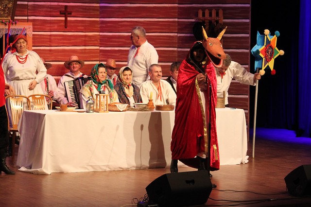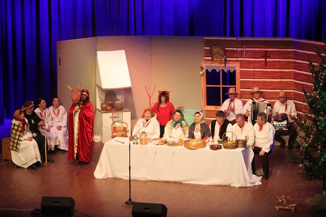 Obrzęd Wigilijny przygotował Zespół Ludowy „Cyganianki” oraz Teatr Obrzędowy, który zawiązał się na tę okoliczność i skupił „artystów” z Cyganów i Nowej Dęby. Było to niezwykłe widowisko, emanujące pozytywna energią, aktorzy swobodne nawiązywali kontakt z publicznością, reprezentując wysoki poziom artystyczny. Wykonawcy bawili publiczność nie tylko słowem - nie zabrakło bogatej oprawy muzycznej i oczywiście żywiołowego tańca. Przybliżyli nam zwyczaje kultywowane w tę Świętą Noc po pośniku w chacie lasowiackiej. Niezwykłą atmosferę oddali wspaniale główni bohaterowie widowiska, tj. Gospodarz Wojtek i Gospodyni Janina, nie ustępowali im Dziadek Gienek i Babcia Halina. Wszyscy aktorzy zachwycili swoim występem licznie zgromadzoną widownię. Grupa pracowała pod opieką instruktorek p. Haliny Ordon i p. Ewy Kieliszek.