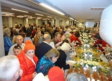 Po wspólnym kolędowaniu nastąpiło łamanie się wigilijnym opłatkiem, składanie świątecznych życzeń oraz degustacja potraw wigilijnych, które ufundowało Starostwo Powiatowe oraz Lokalna Grupa Rybacka Puszczy Sandomierskiej.