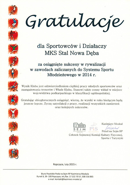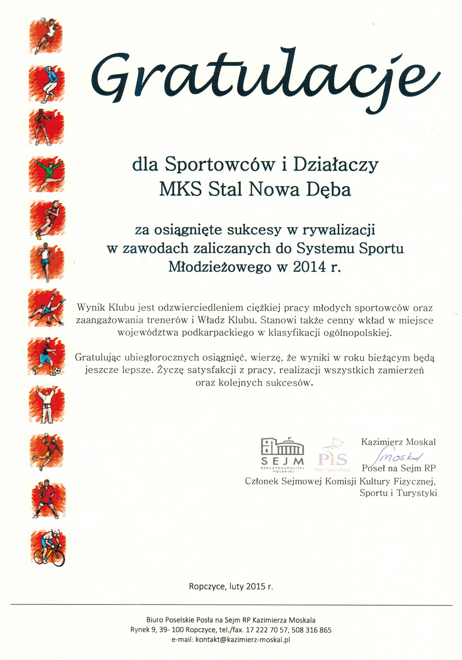 Punkty i dobre miejsce Stali Nowa Dęba, a także Gardy Nowa Dęba w tej klasyfikacji, to efekt dużego wsparcia finansowego ze strony Urzędu Miasta i Gminy Nowa Dęba bez którego nie byłoby takich wyników, za co należą się wielkie słowa podziękowania i uznania !