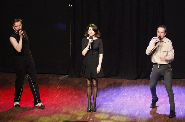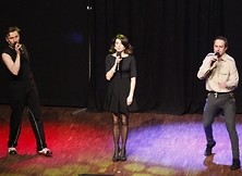 15 marca 2015 r. gościliśmy krakowski kabaret FORMACJA CHATELET z najnowszym programem pt. GOŁOLEĆ. Grupę tworzą: Adam Małczyk - sceniczny przywódca, Michał Pałubski - człowiek guma i sceniczny kameleon, Barbara Tomkowiak - wprowadzająca wdzięk i urodę oraz Askaniusz Petynka - dźwiękowiec perfekcjonista. Trzy komiczne żywioły stworzyły kabaret najwyższej próby, spełniając misję rozbawienia publiczności. Przedstawiony program był mieszanką kabaretu, teatru, piosenki i improwizacji, bez której nie może obyć się żaden spektakl tego zespołu. Zobaczyliśmy skecze o małych poślizgach i bolesnych upadkach, z których podnoszenie się okazało się być całkiem zabawne, a celowe błędy nasuwały różne skojarzenia. Codzienne życiowe sytuacje były pokazane „w oparach absurdu”. Formacja korzystała z różnych środków artystycznego wyrazu: klasyczne skecze i monologi przeplatały dopracowane muzycznie piosenki nawiązujące do najlepszych tradycji kabaretowych. Zespół nawiązał fantastyczny kontakt z nowodębską publicznością, która stała się współtwórcą kabaretowych improwizacji.