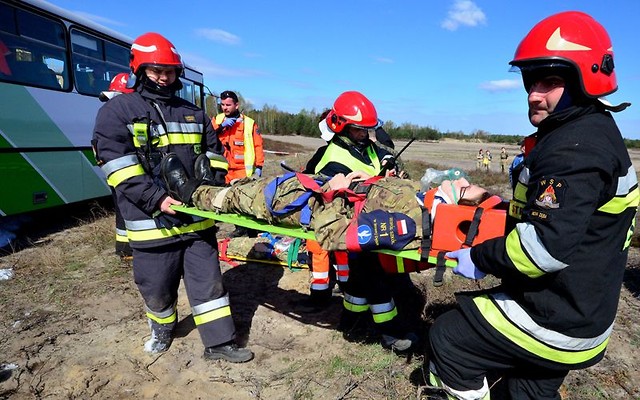 NOWA DĘBA. Ratownicy z Kolbuszowej i Wojskowa Straż Pożarna z Nowej Dęby sprawdzali, czy poradziliby sobie, gdyby przyszło im ratować rannych z autobusu, który wjechał na niewypał.