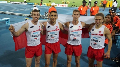 Pierwszego dnia rywalizacji w Nassau podczas zawodów IAAF Word Relays na Wyspach Bahama najlepiej poszło Polakom w nieolimpijskich konkurencjach. Na 4x800 m nasi panowie w składzie: Karol Konieczny, Kamil Gurdak, Marcin Lewandowski i Adam Kszczot - podobnie jak rok wcześniej - wywalczyła srebro (czas 7:09.98).