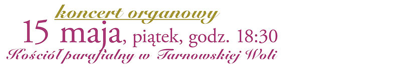 Piątek, 15 maja 2015 r., godz. 18:30. Kościół parafialny w Tarnowskiej Woli.